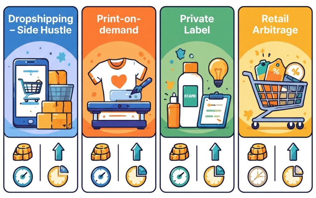 Selecting the right business model represents your first critical decision when launching an e-commerce side hustle. Each approach offers distinct advantages, challenges, and capital requirements. Your choice should align with your available budget, time commitment, and long-term business goals.